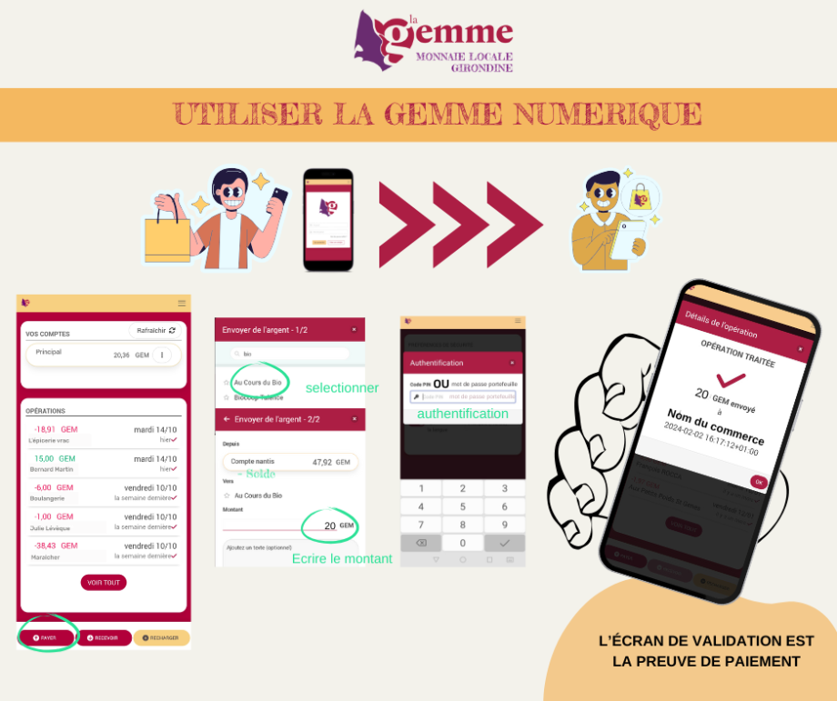Pour faciliter les paiements, simplifier les démarches et rendre l'utilisation de la gemme plus accessible pour toutes et tous, l'association a crée un portefeuille eGemme accessible par une application.